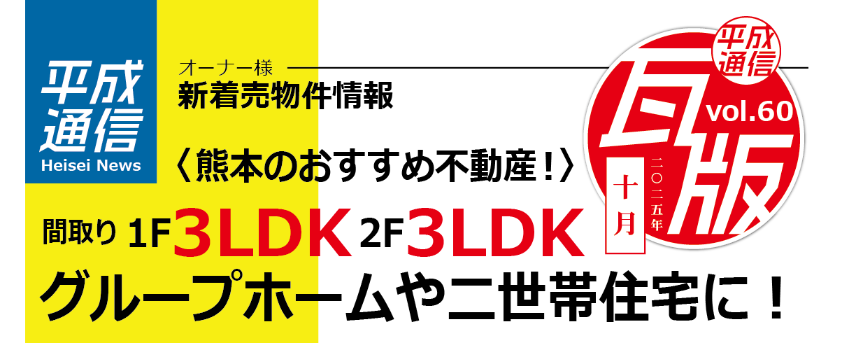 平成通信VOL.60 新着売物件情報 御幸笛田3丁目戸建6LLDDKK!グループホームや二世帯住宅にも