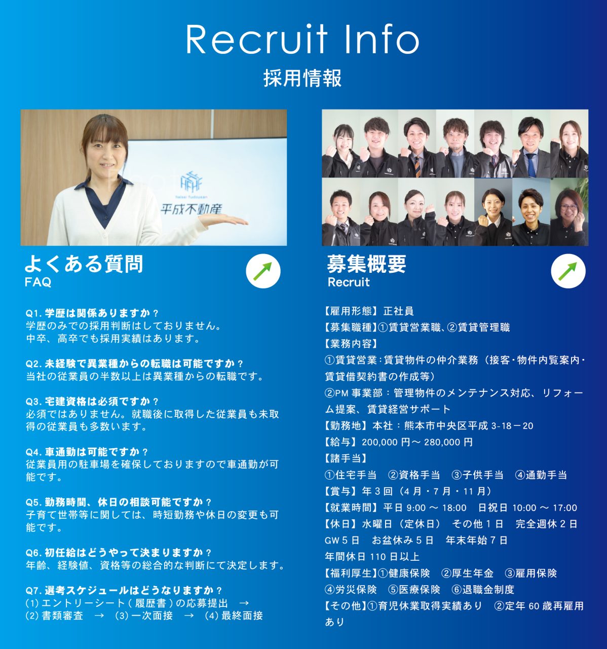 熊本市全域の賃貸物件をご紹介させていただきます!株式会社平成不動産では入居者様のライフスタイルに合わせて、様々な賃貸物件をご紹介させて頂きます。当社では経験豊富な男性スタッフと、お客様の立場に立ったきめ細やかなサービスをさせて頂く女性スタッフがお客様のご来店をお待ち致しております。熊本市の不動産は、株式会社平成不動産にお任せください!